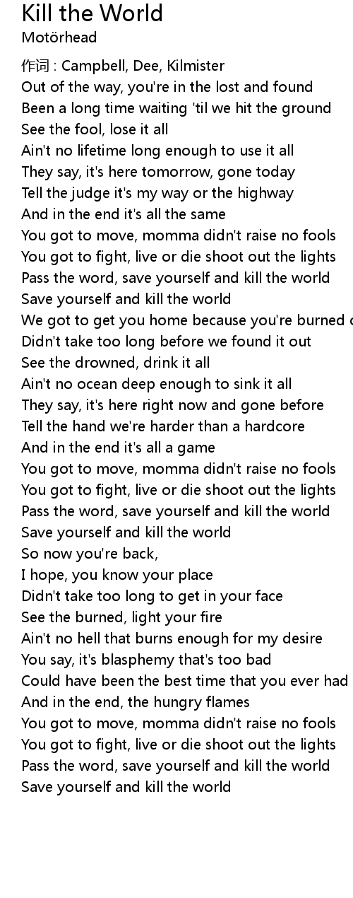 | 作词 : Campbell, Dee, Kilmister | |
