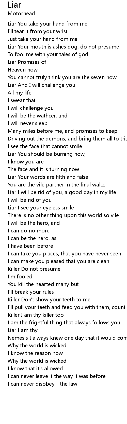 | Liar Your words are filth and false | |