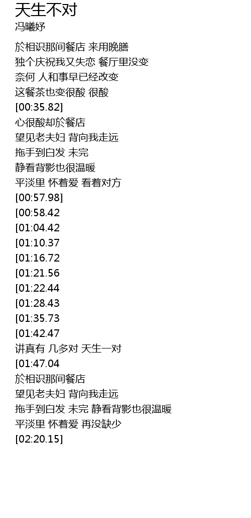 | [02:26.93][01:04.42] | 世界上几对 全日得两三句 |