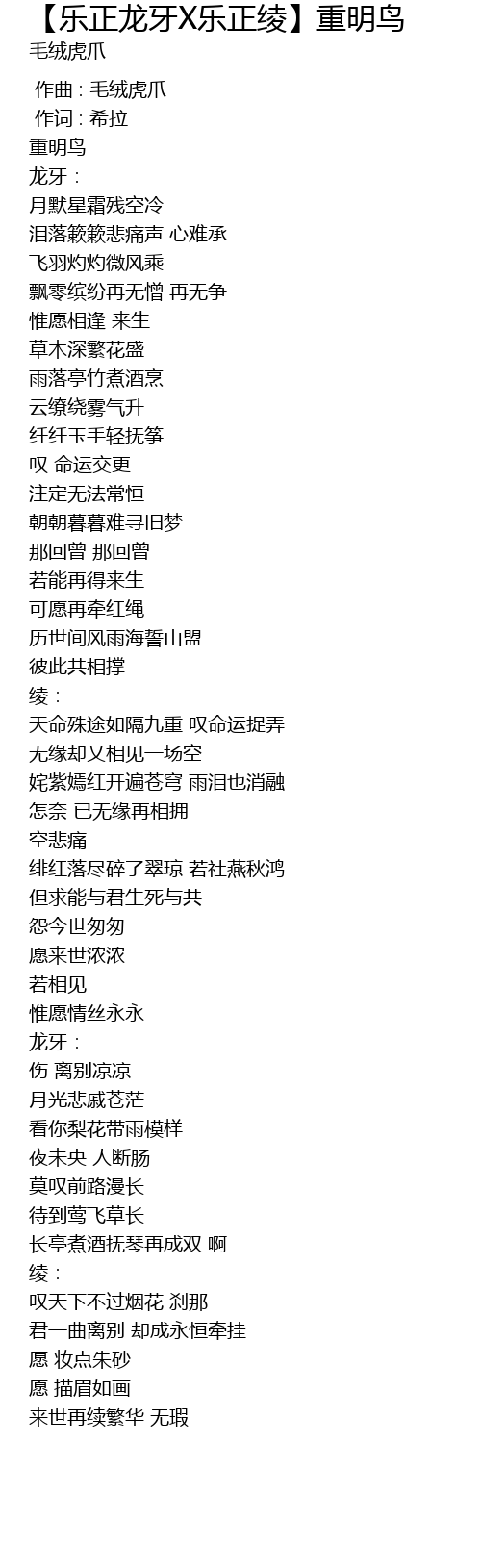 | Song | 【乐正龙牙X乐正绫】重明鸟 |