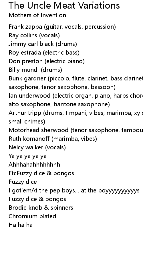 The Uncle Meat Variations Lyrics