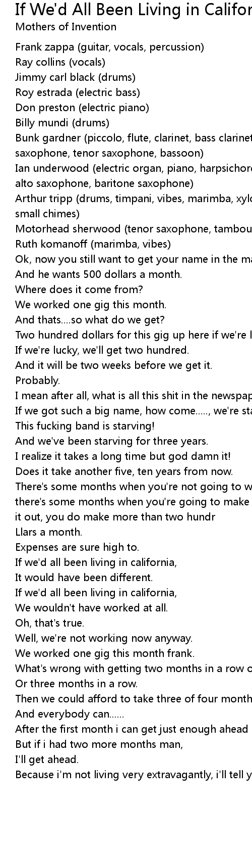 Ian underwood (electric organ, piano, harpsichord, celeste, flute, clarinet, alto saxophone, baritone saxophone) |