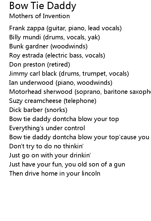 Bow tie daddy dontcha blow your top'cause you think you're gettin' too old |