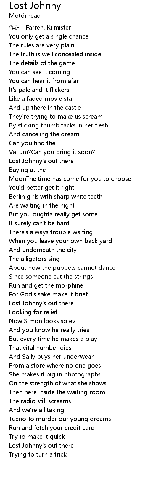 | Lost Johnny' s out there | |
