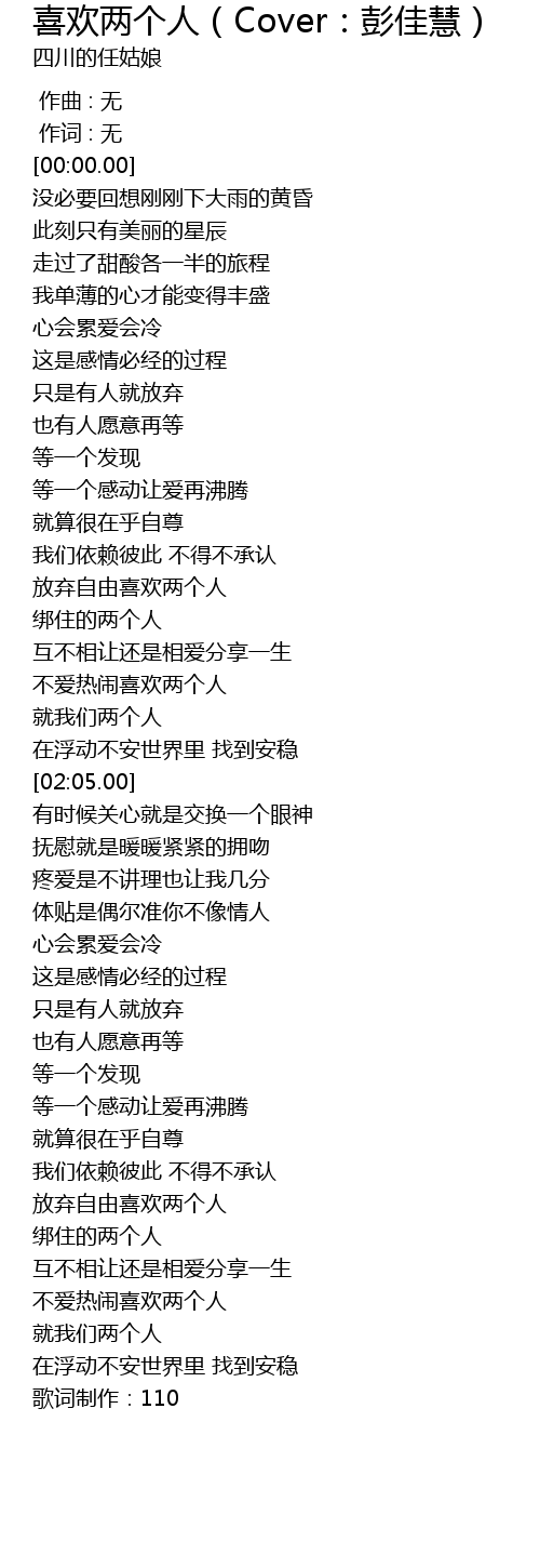 | [01:36.82] | 不爱热闹喜欢两个人 |