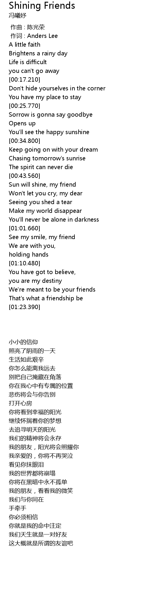 | [01:18.310] | That's what a friendship be |