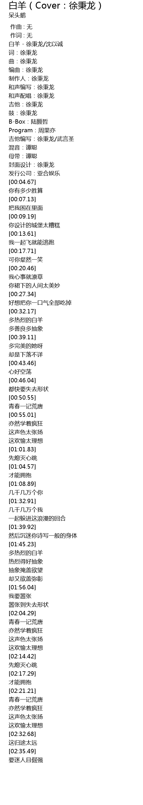 | [00:00.61] | 白羊 - 徐秉龙/沈以诚 |