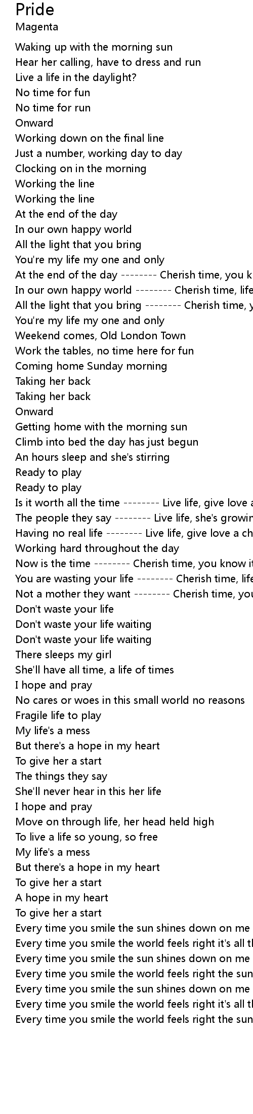 | Not a mother they want -------- Cherish time, you know it won't last | |