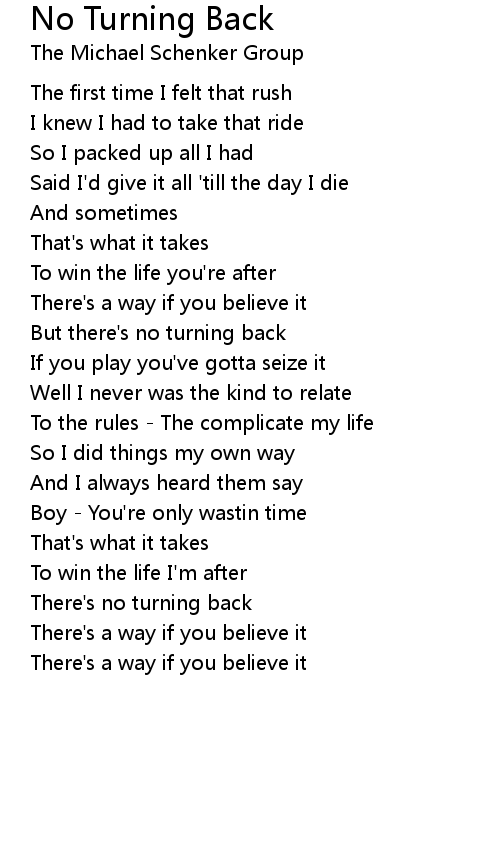 But there's no turning back |