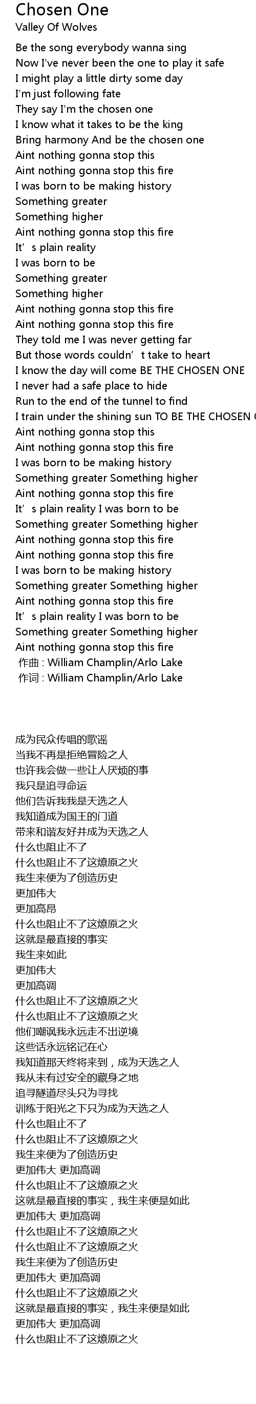| [01:34] | I know the day will come BE THE CHOSEN ONE |