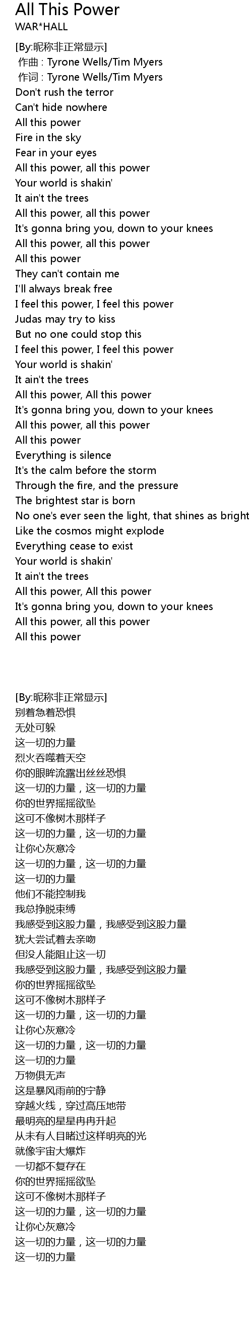 | [00:57.705] | It' s gonna bring you, down to your knees |
