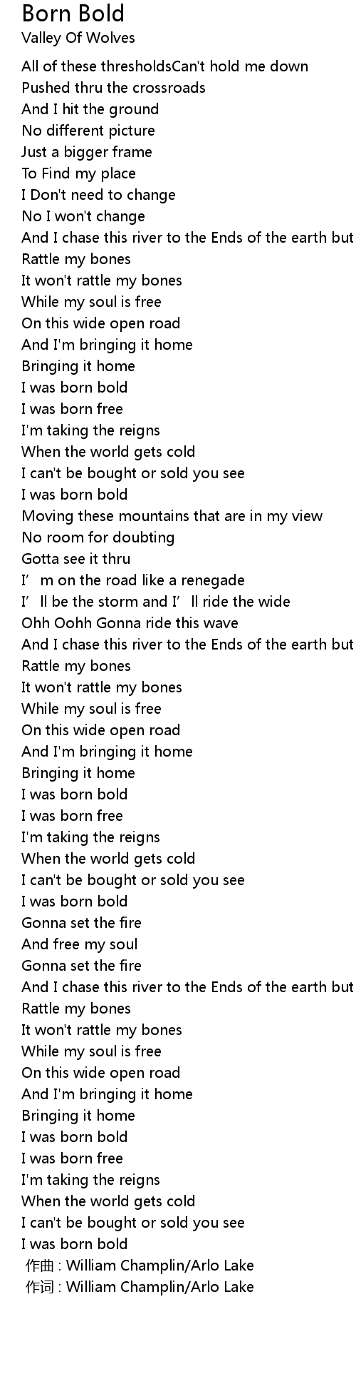| [01:33] | I' ll be the storm and I' ll ride the wide |
