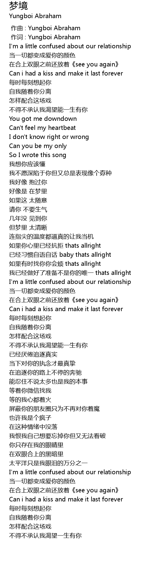 | [00:01.000] | 作词 : Yungboi Abraham |
