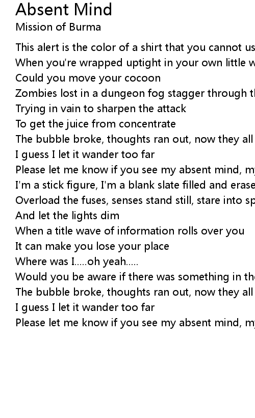 Please let me know if you see my absent mind, my absent mind |