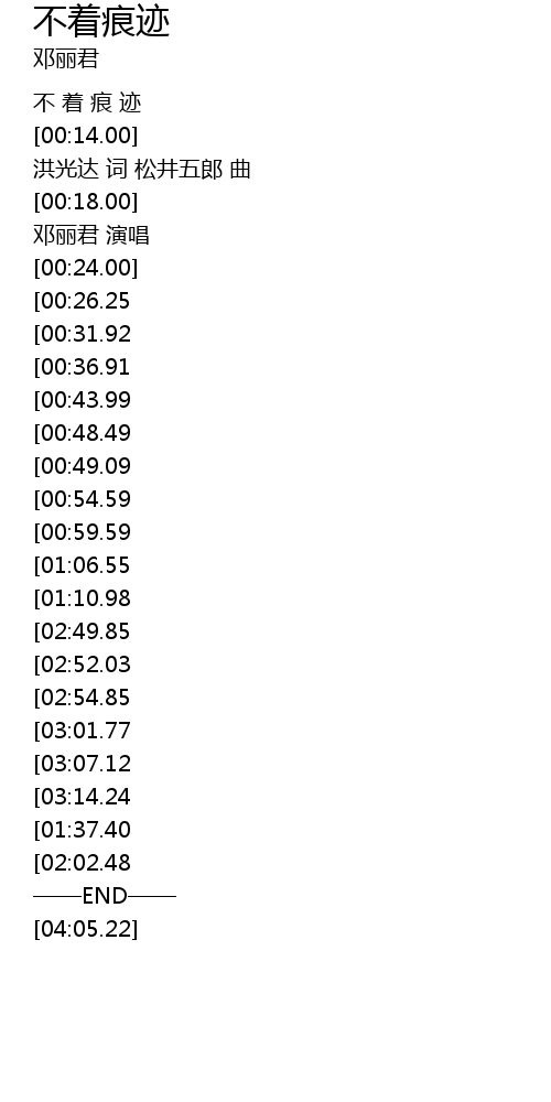 | [03:15.74][01:37.40] | 邓丽君:《不着痕迹》 |