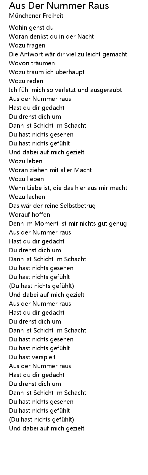 | Song | Aus Der Nummer Raus |