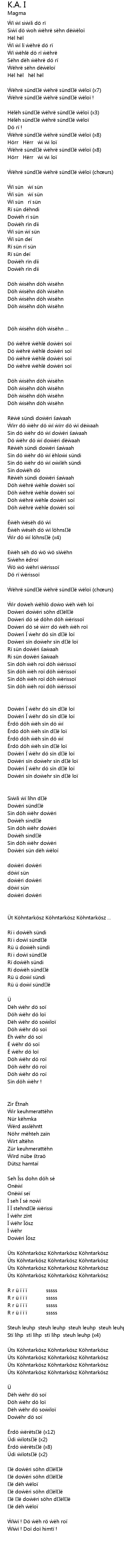 | Ẁëhrë sündᴧë ẁëhrë sündᴧë ẁëloï (chœurs) | |
