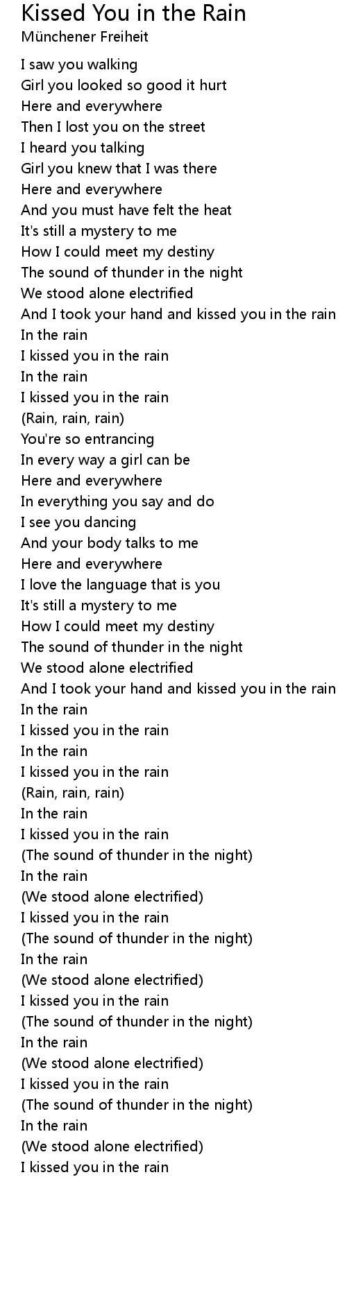 And I took your hand and kissed you in the rain |