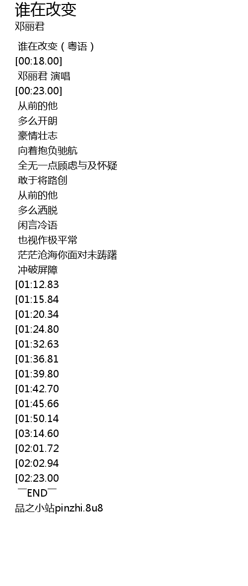 | [03:30.92][02:02.94] | 邓丽君:《谁在改变》 |
