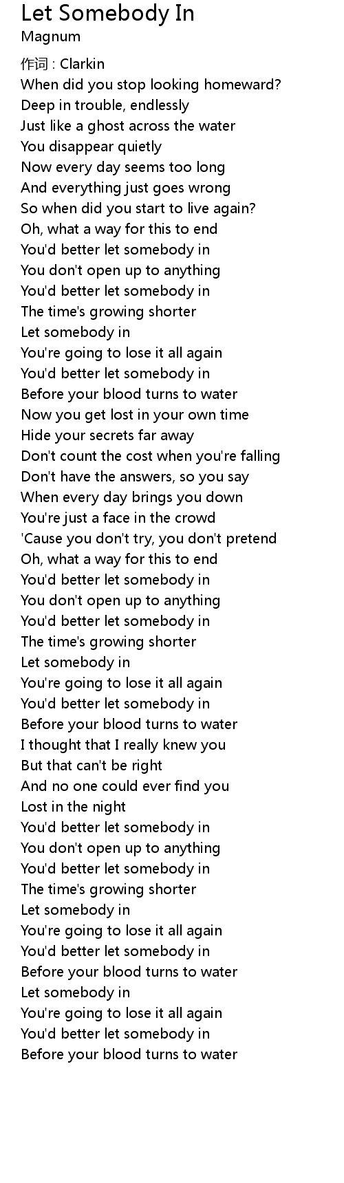 | You'd better let somebody in | |