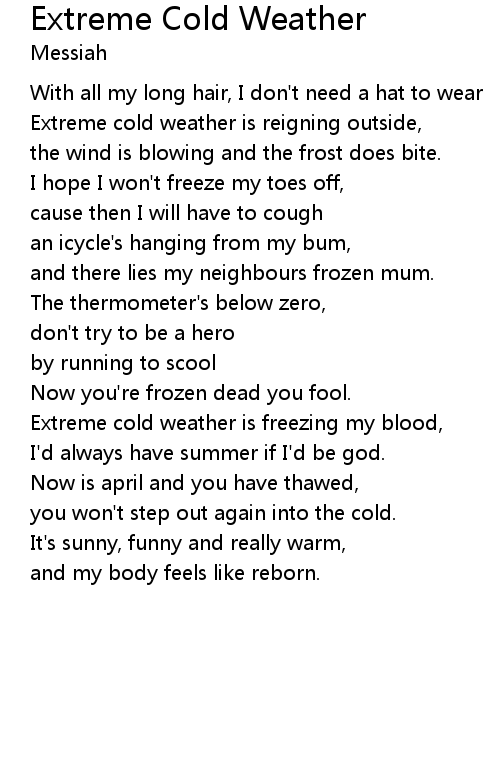 Extreme cold weather is freezing my blood, |