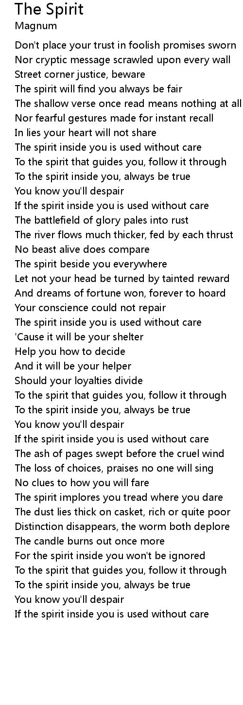 The spirit will find you always be fair |