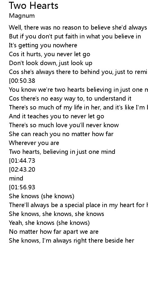 [02:55.91][02:43.20][01:50.88] You know we're two hearts believing in just one mind