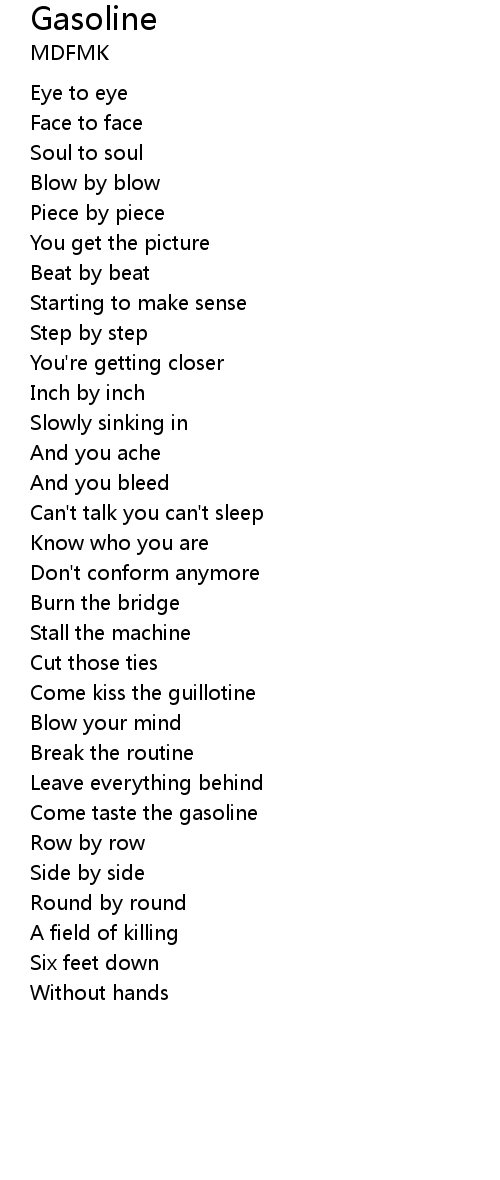 | Come taste the gasoline | |