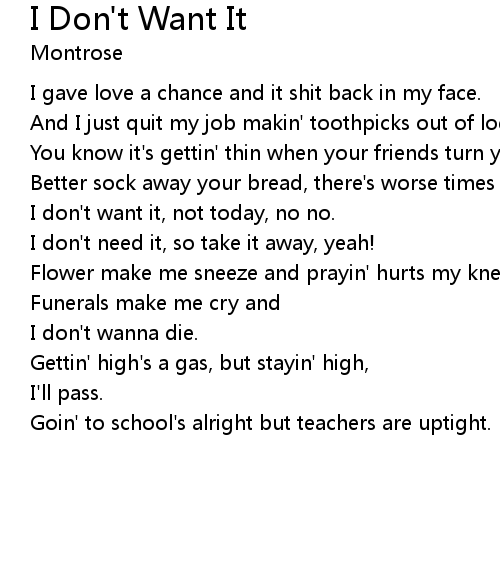 | I don't want it, not today, no no. | |