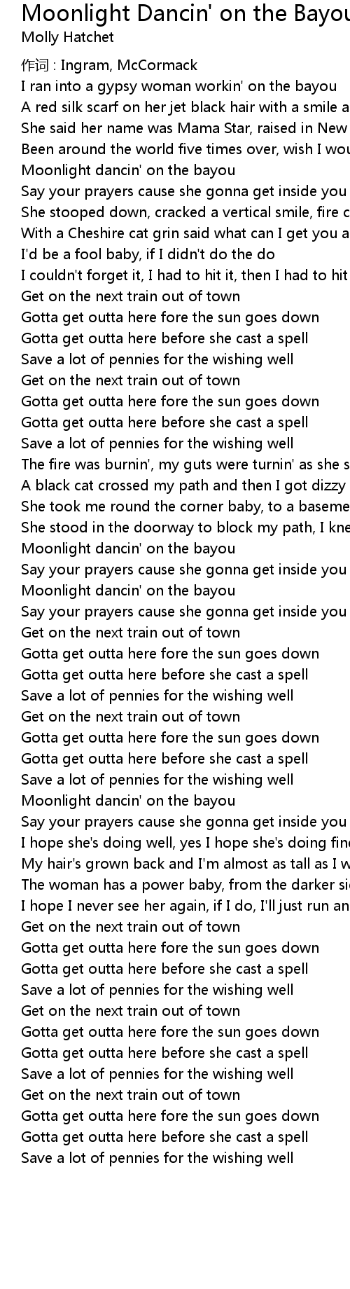 | The fire was burnin', my guts were turnin' as she swinged and danced around | |