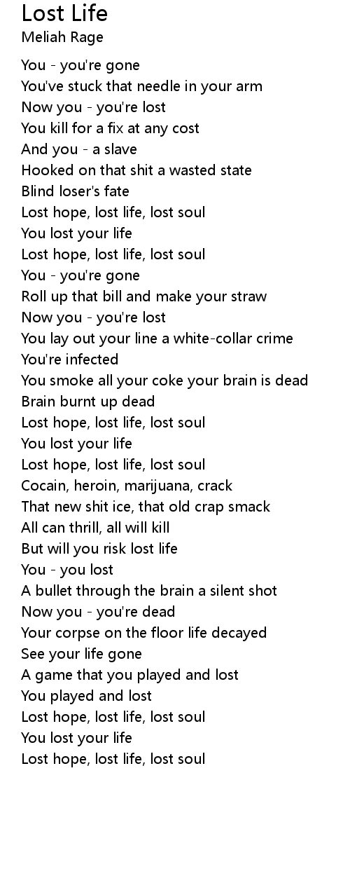 Lost hope, lost life, lost soul |