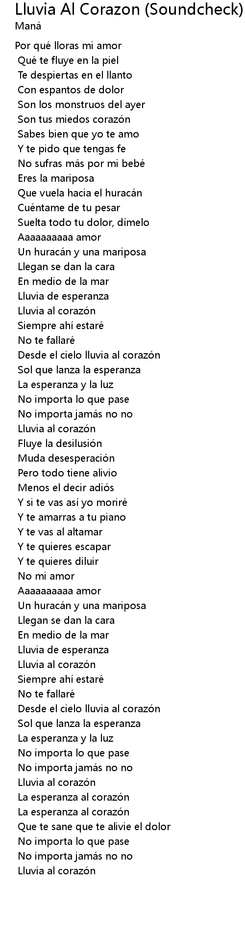 | Song | Lluvia Al Corazon (Soundcheck) |