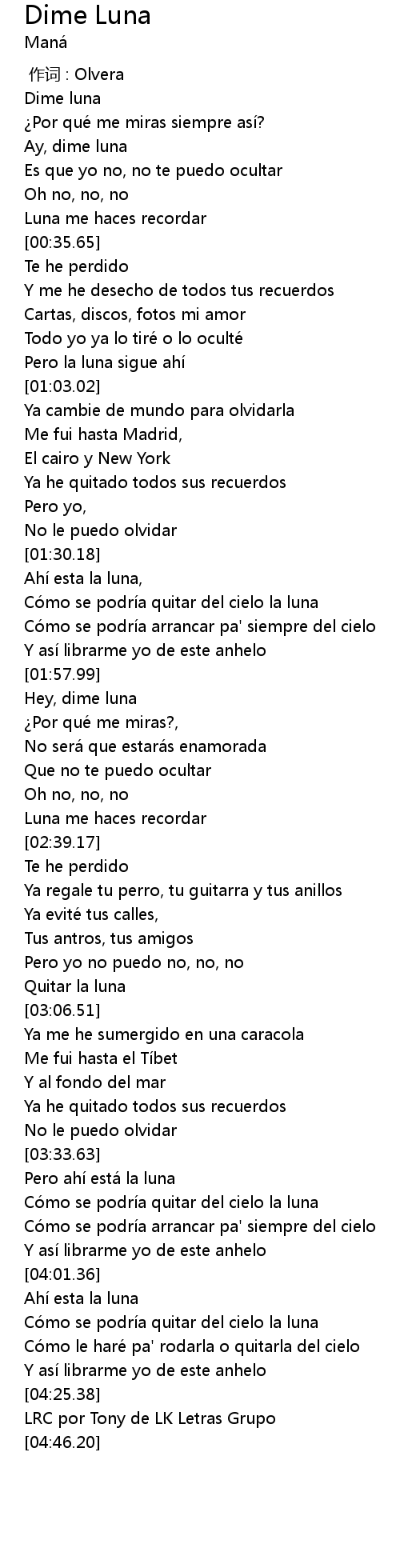 | [01:40.43] | Có mo se podrí a quitar del cielo la luna |
