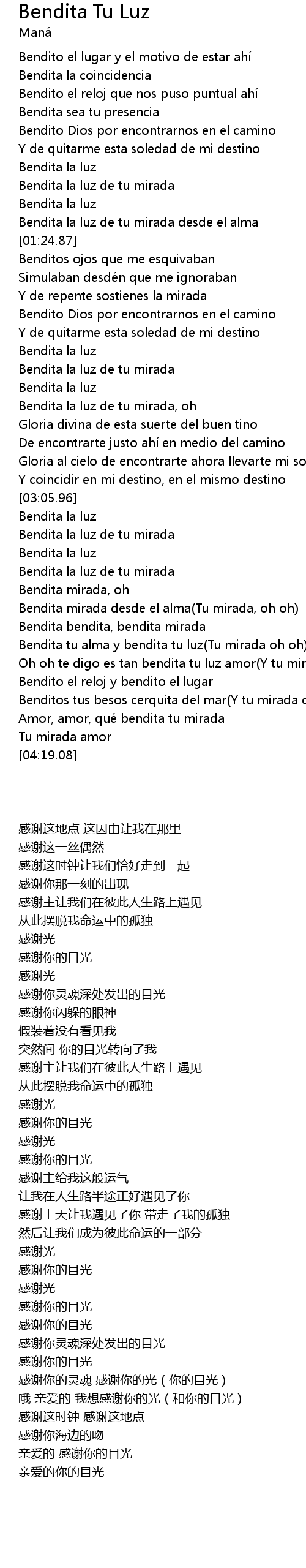 | [03:48.46] | Bendita tu alma y bendita tu luz Tu mirada oh oh |