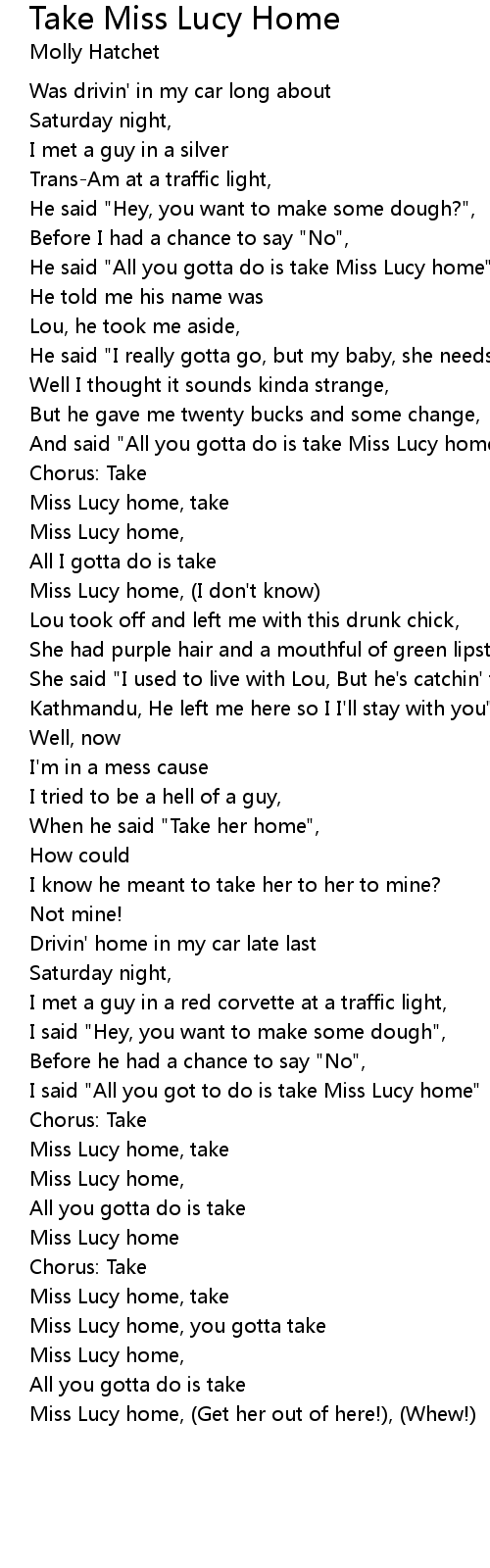 He said "All you gotta do is take Miss Lucy home" |