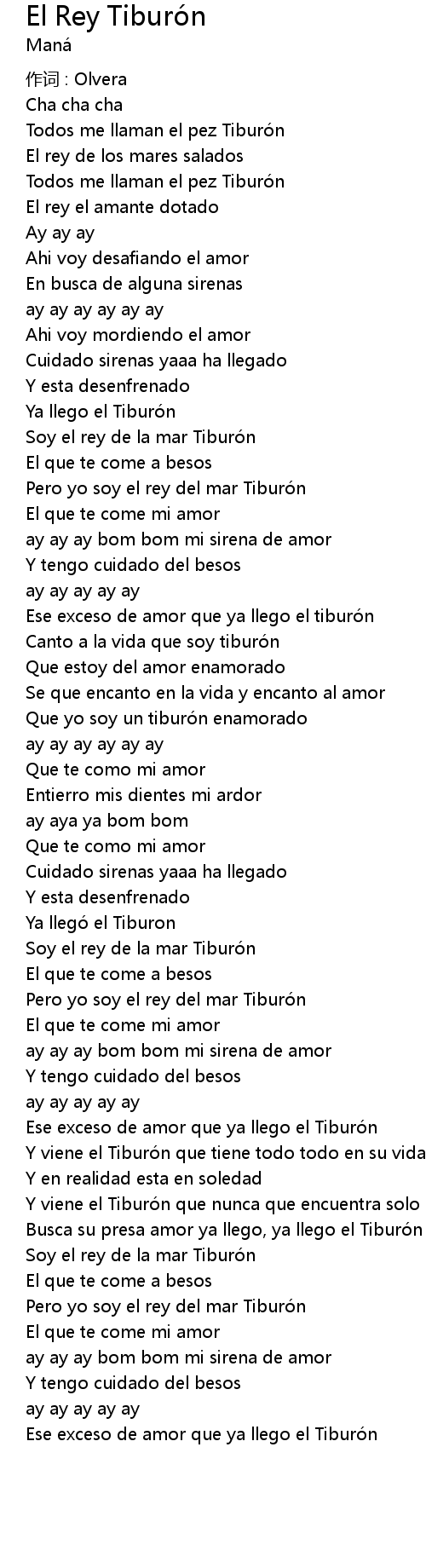 | Busca su presa amor ya llego, ya llego el Tiburón | |