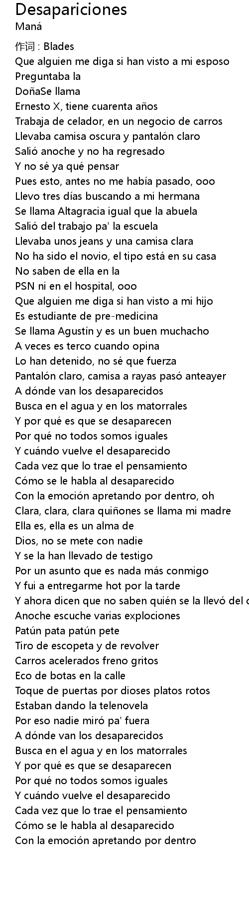 | Song | Desapariciones |