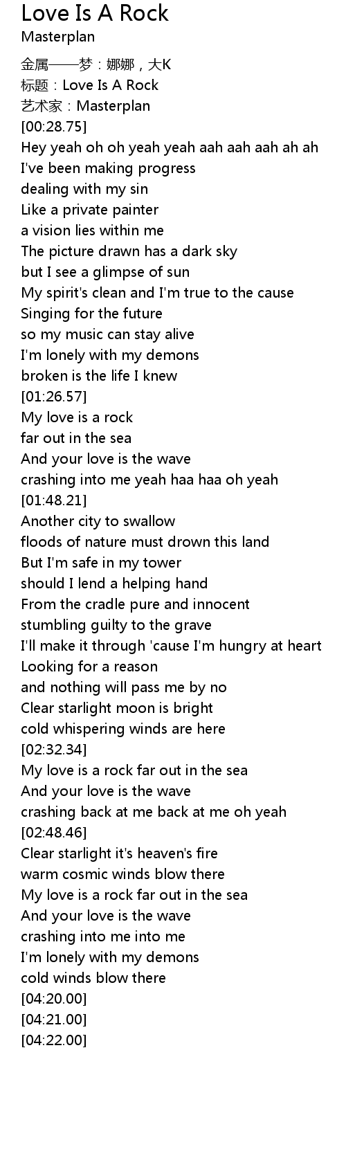 | [00:07.75] | biāo tí: Love Is A Rock |