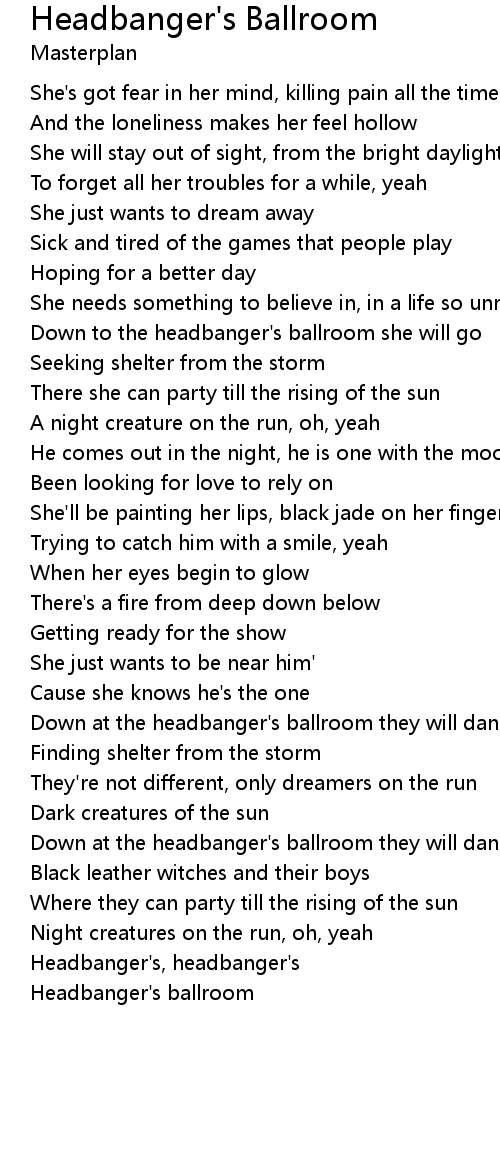 Down to the headbanger's ballroom she will go |