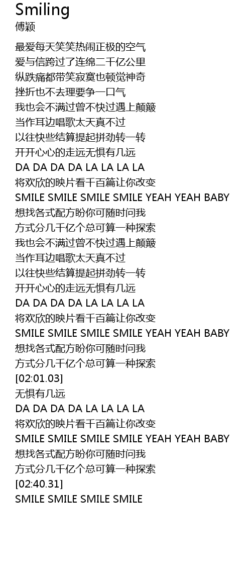 | [02:43.26] | SMILE SMILE SMILE SMILE |