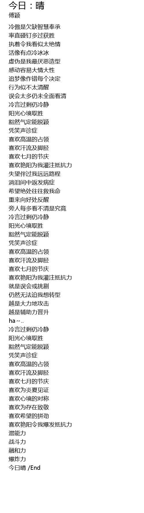 | [03:17.18] | 喜欢艳阳令我爆发抵抗力 |