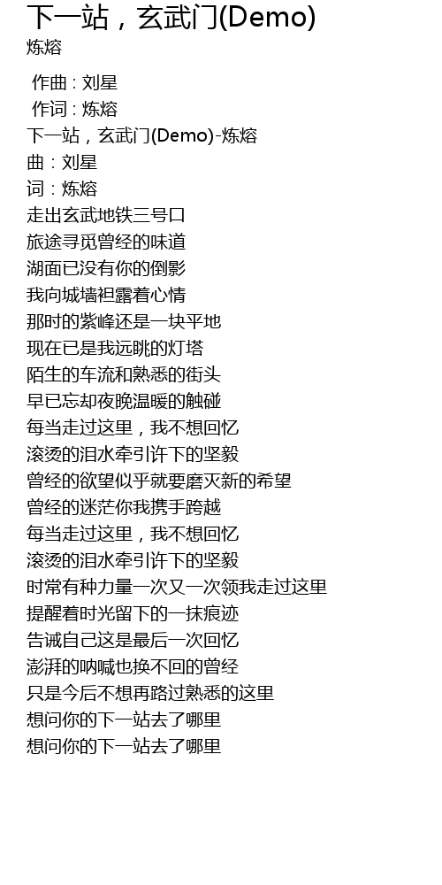 | [00:13.73] | 下一站,玄武门(Demo)-炼熔 |