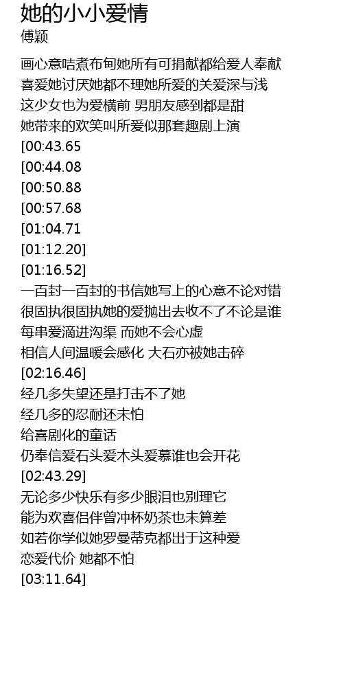 | [01:43.61] | 相信人间温暖会感化 大石亦被她击碎 |