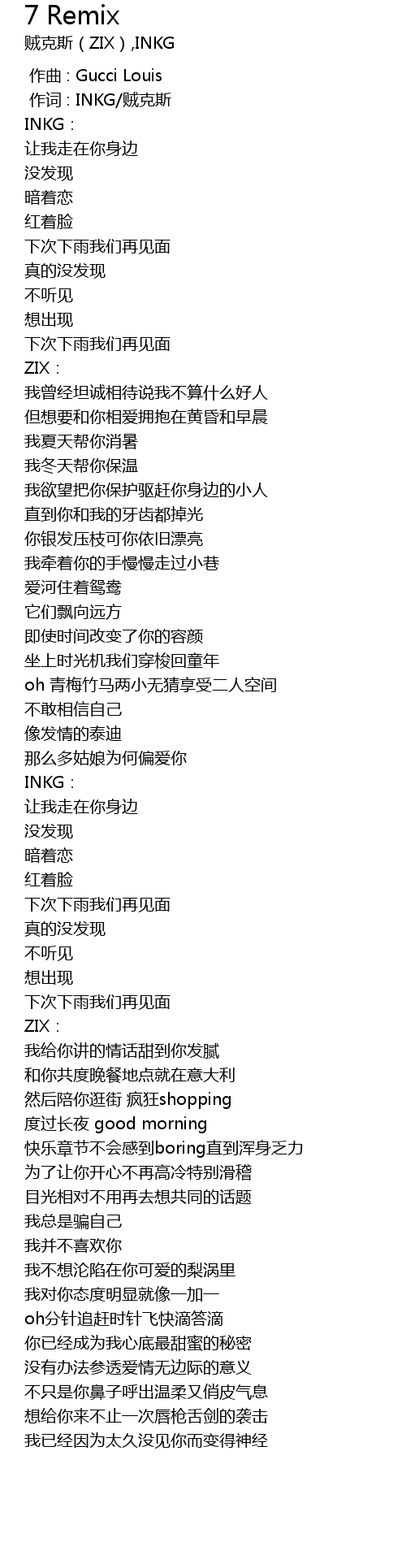 | [00:01.000] | 作词 : INKG/贼克斯 |
