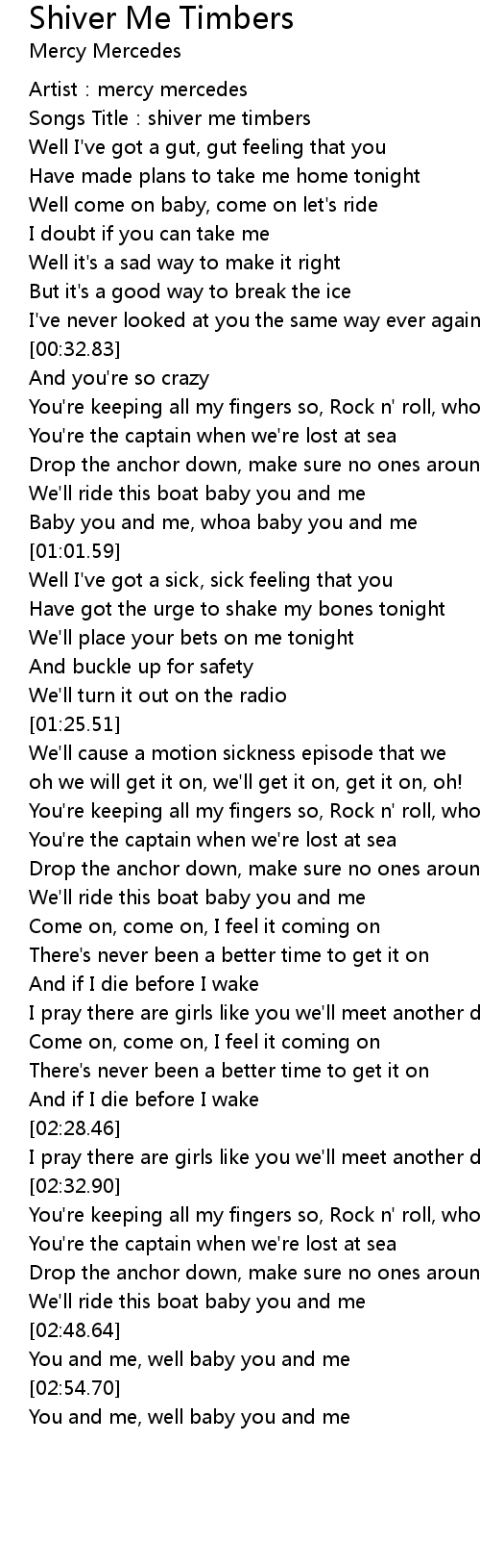 | [00:02.48] | Songs Title: shiver me timbers |