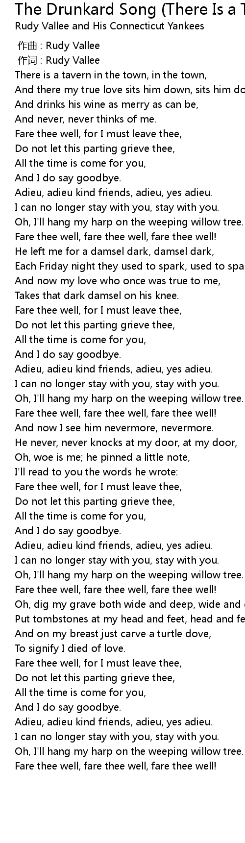 | Song | The Drunkard Song (There Is a Tavern in the Town) |