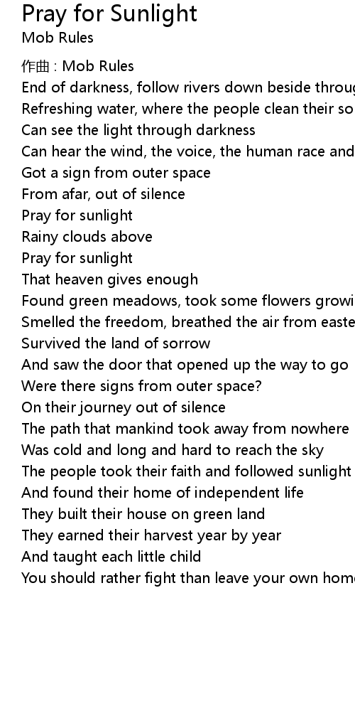 | Song | Pray for Sunlight |