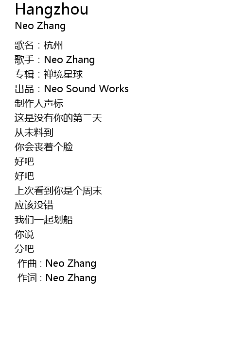 | [00:00.000] | zuò qǔ : Neo Zhang |