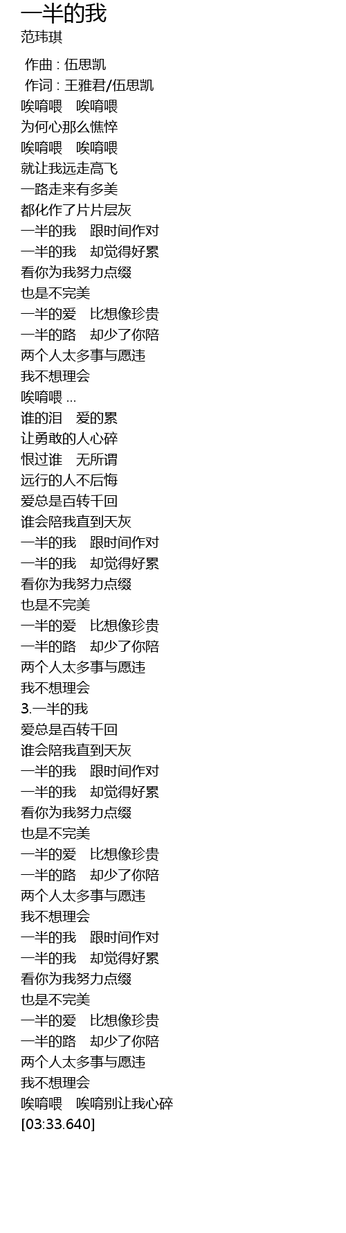 | [03:25.510] | 唉唷喂 唉唷别让我心碎 |