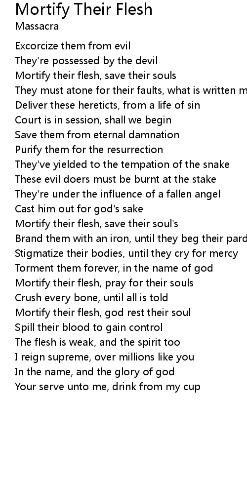 Mortify their flesh, god rest their soul |